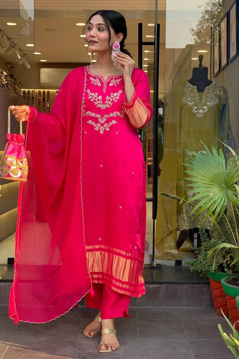 Step into effortless style with our Straight Cut Suit Set crafted for the modern woman who cherishes tradition. Made from soft Viscose it keeps you comfortable all day long. The Embroidered design lends a touch of sophistication to your outfit. Perfect for Festive this Straight Cut Suit Set is a must-have for versatile styling options. Style it with minimalistic accessories and flats for a casual look or jewelry and heels for special events