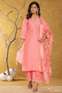 Pink Solid Silk Blend Straight Cut Suit Set