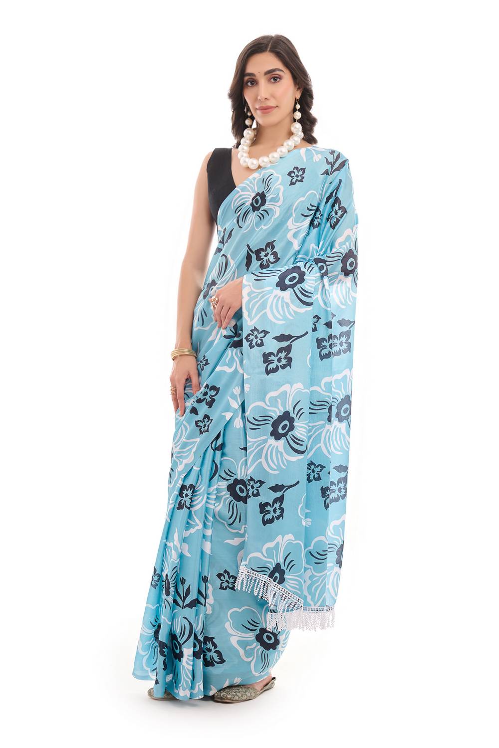 Elevate your wardrobe with our exquisite Ready to Wear Saree a masterpiece crafted to add timeless elegance to your style. Made from Chinon this saree offers a perfect mix of comfort and sophistication. Adorned with Printed it showcases intricate craftsmanship that speaks volumes of tradition and artistry. Perfect for Party, Wedding, Sangeet, Mehendi this saree is a versatile addition to your collection, ensuring you stand out effortlessly. Pair it with elegant Jewelry, for a glamorous look. Add Clutches or Potli Bags and complete the ensemble with Wedges & Heels , making it a perfect choice for any event. Make a statement and embrace the elegance of Saree today