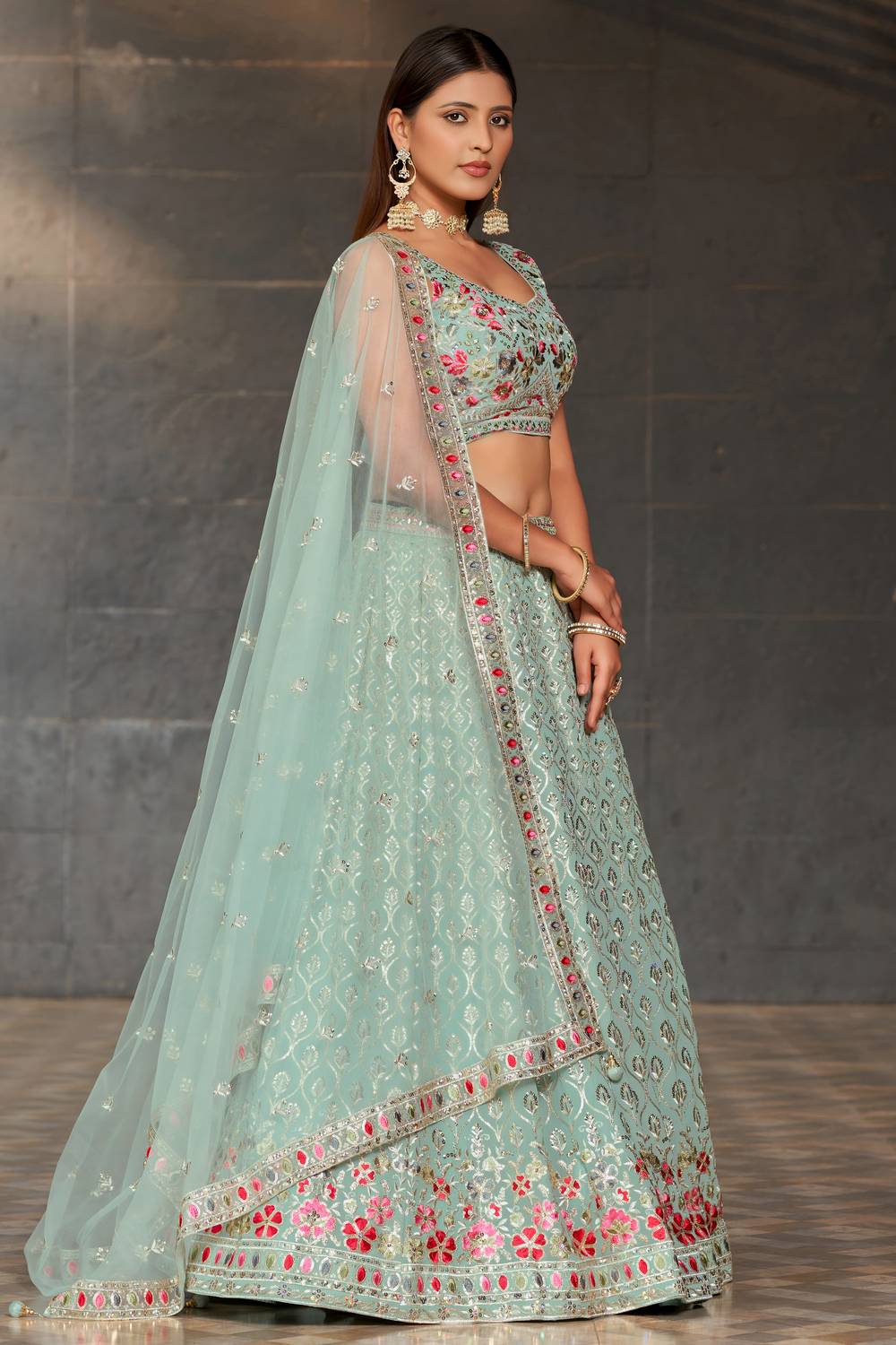Sky Blue Sequin with Embroidered Georgette Lehenga