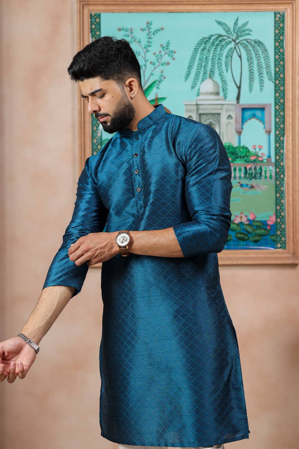 Experience timeless style with our Men's Kurta Sets a perfect balance of tradition and modern sophistication. Made from Art Silk this kurta set offers unmatched comfort and a refined look. Featuring Embroidered it reflects a rich heritage with a modern touch. Designed for Festive this outfit is perfect for special occasions or your celebrations. Complete the look with mojari shoes and a classic watch for a dapper appearance. Make every occasion special with the elegance of Men's Kurta Sets