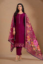 Violet Floral Embroidered Chinon Straight Cut Suits