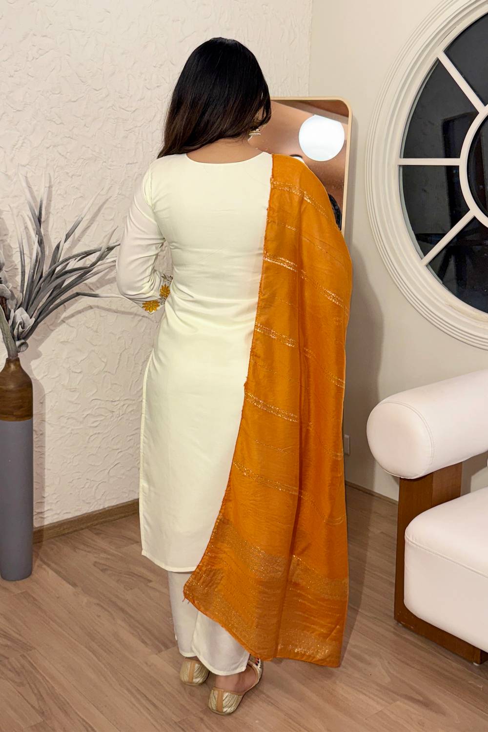Step into effortless style with our Kurti Pant Set crafted for the modern woman who cherishes tradition. Made from soft Cotton it keeps you comfortable all day long. The Floral Embroidered design lends a touch of sophistication to your outfit. Perfect for Festive this Kurti Pant Set is a must-have for versatile styling options. Style it with minimalistic accessories and flats for a casual look or jewelry and heels for special events