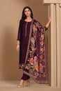 Wine Floral Embroidered Chinon Straight Cut Suits