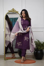 Wine Floral Embroidered Silk Kurti Pant Set