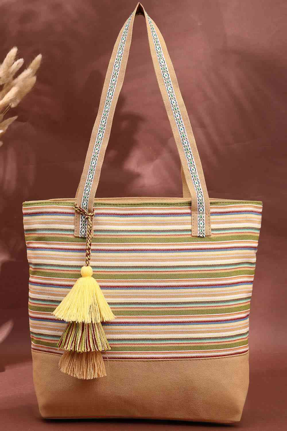 Brown Stripe Jacquard Cotton Canvas Tote Bag