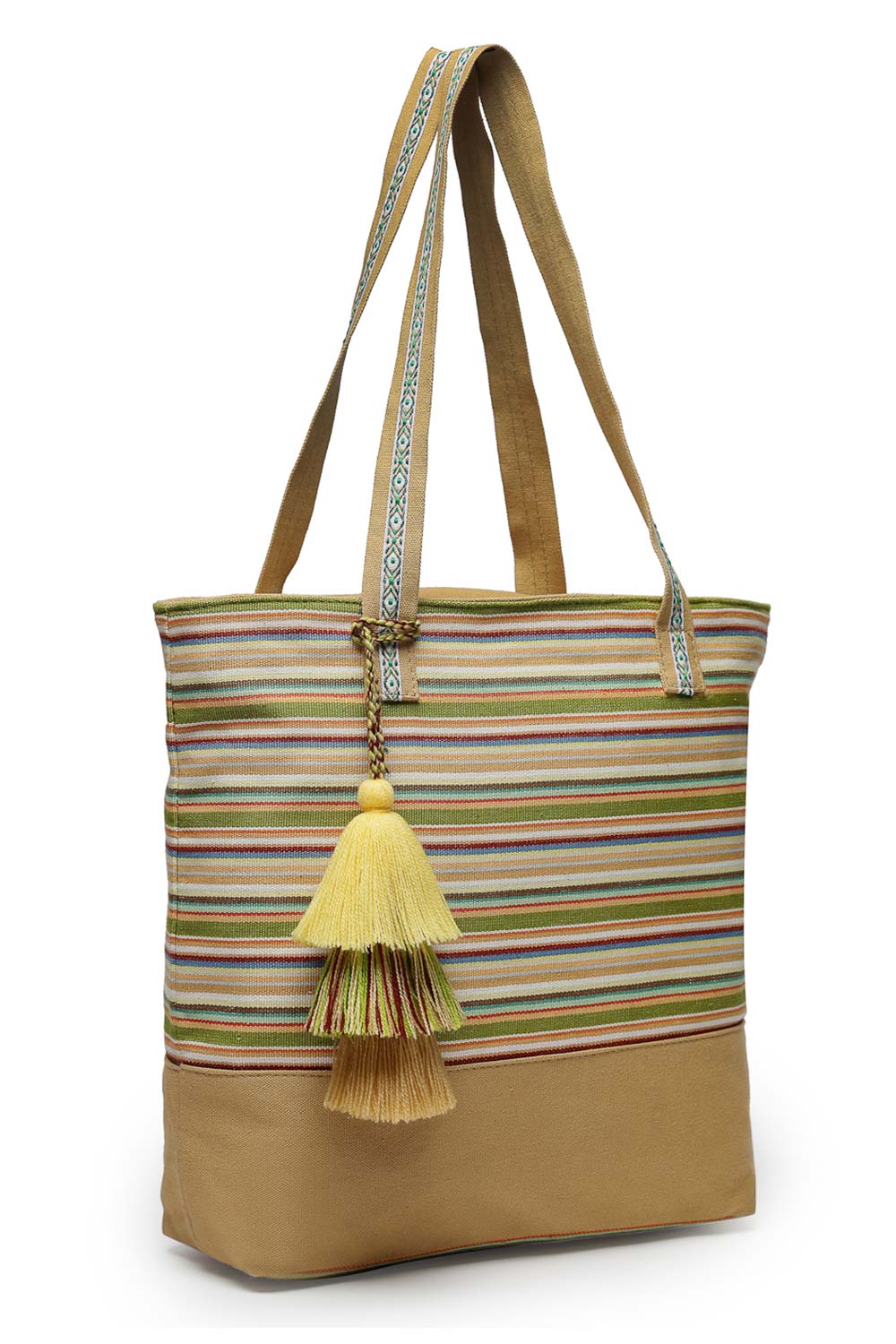 Add a subtle sparkle to your attire with our Tote Baga hand accessory crafted for timeless beauty. Designed with Cotton Canvas and featuring elegant Stripe it’s perfect for Casual Wear it solo for a minimalistic vibe or layer it with other accessories to create a statement look