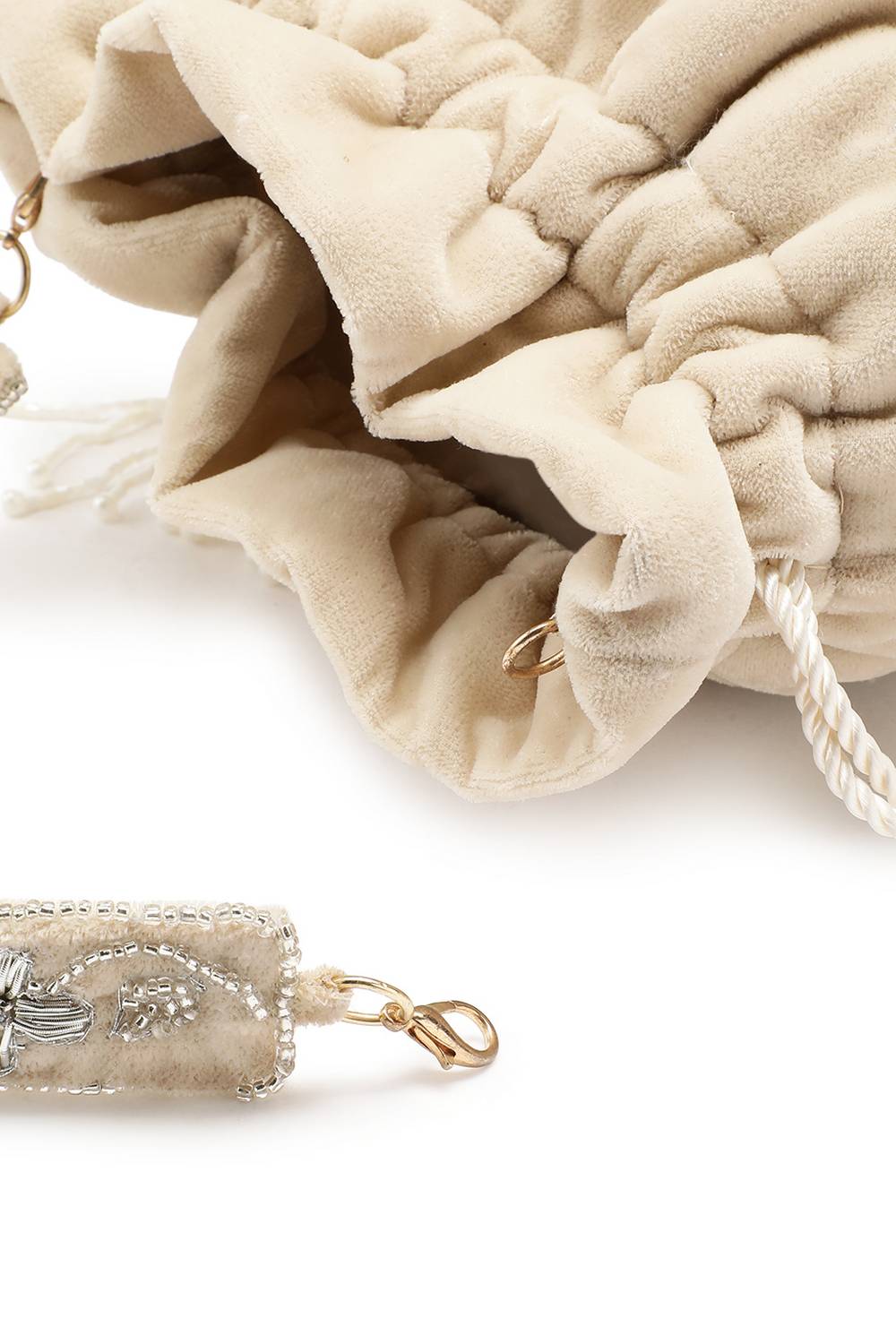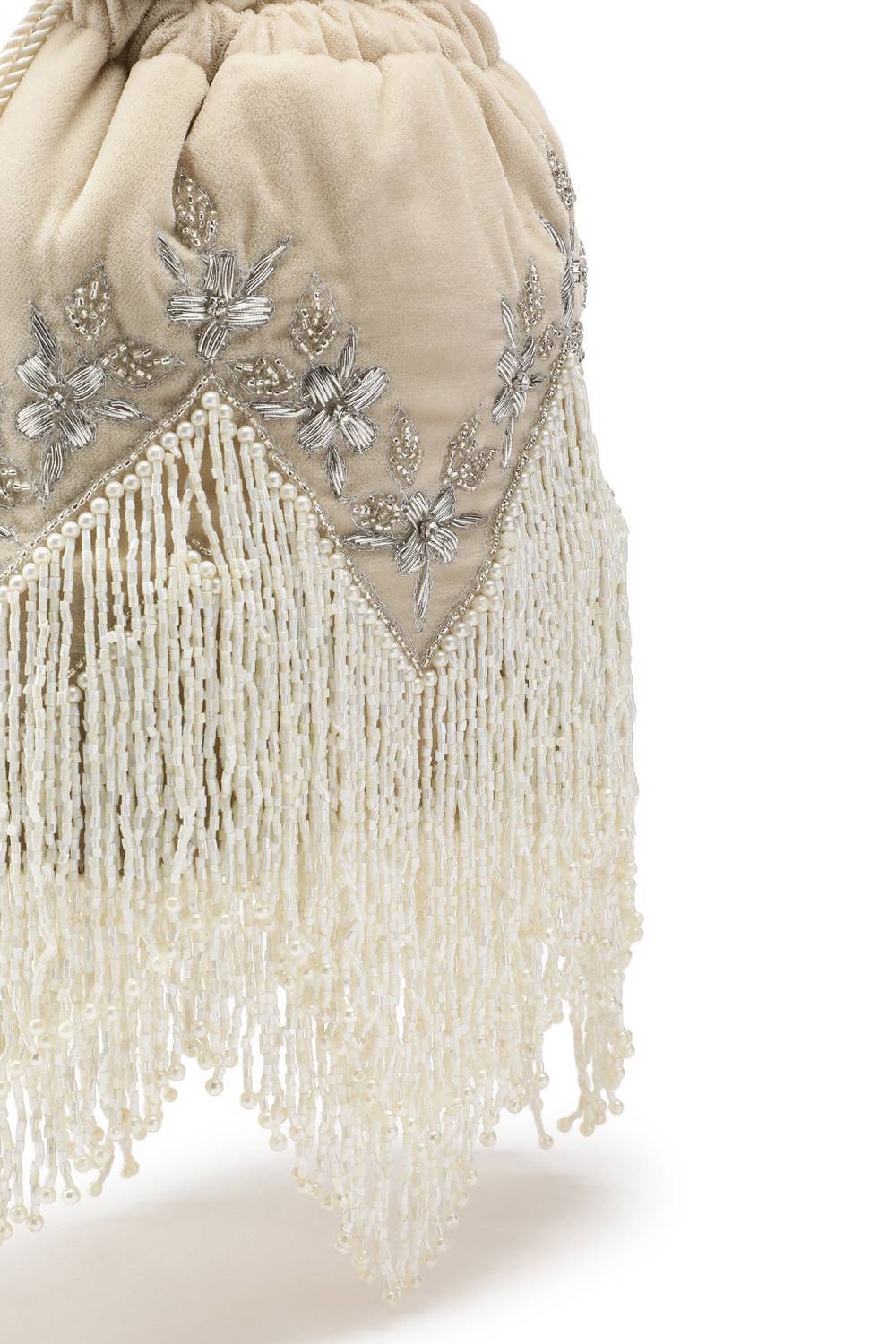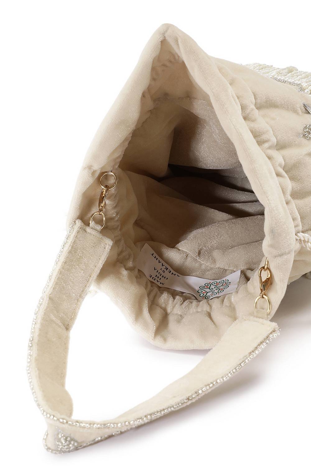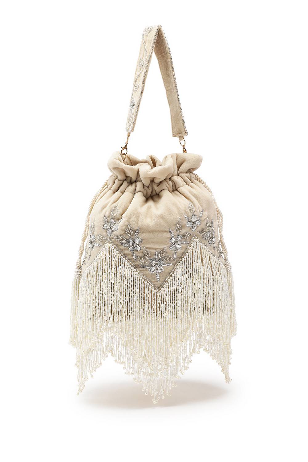 Cream Floral Zari Embroidered Velvet Potli
