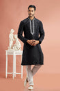 Men's Black Embroidered Raw Silk Kurta Pyjama Set