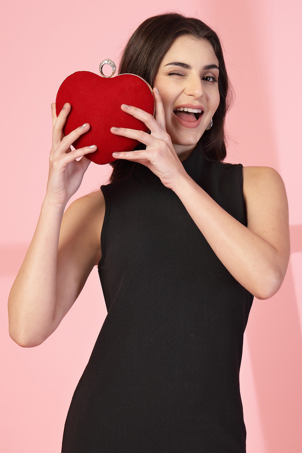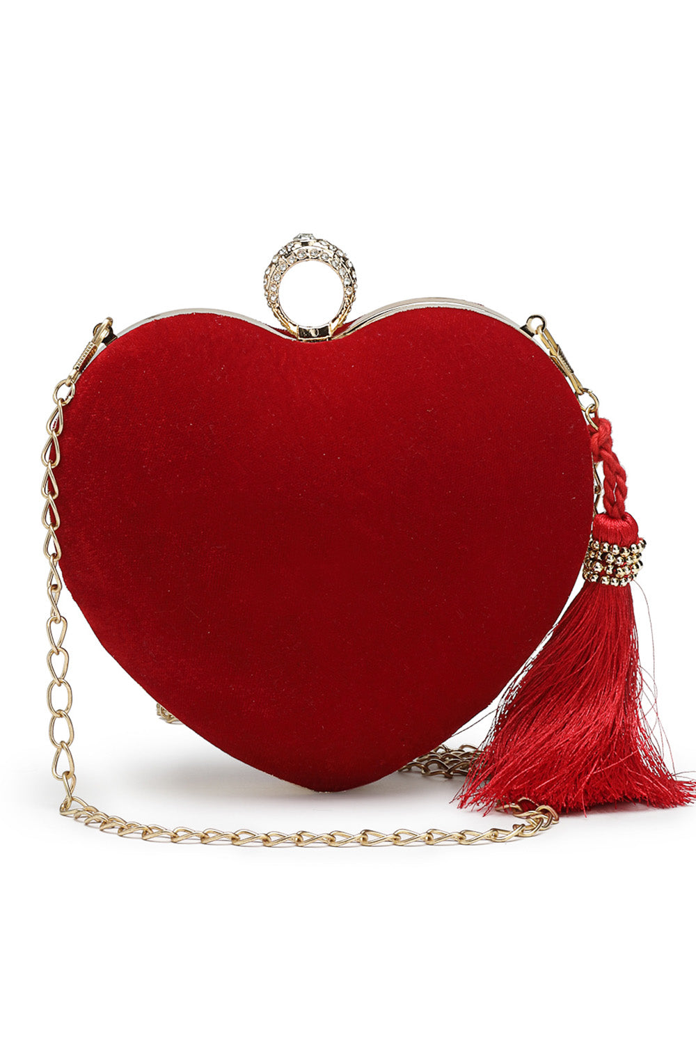 Red Heart Shaped Solid Velvet Clutch