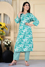 Sea Green Floral Printed Kurti Pant Set