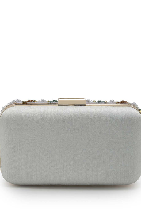 Pochette Off White Faux Silk Pearl Embellished Clutch