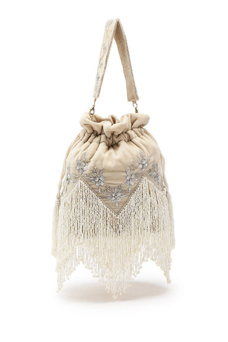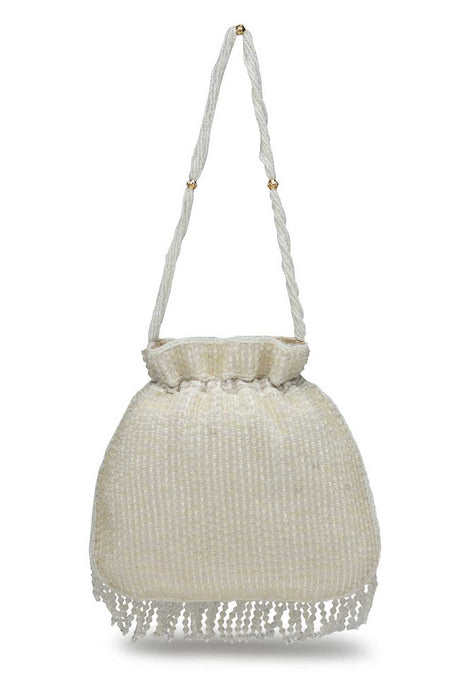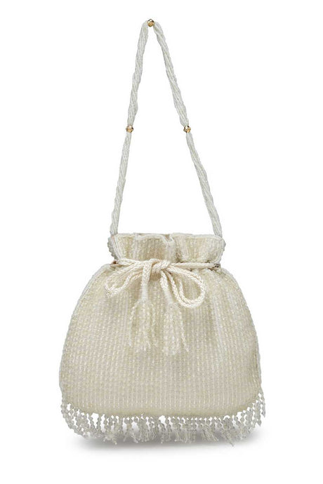 White Embellished Faux Silk Potli