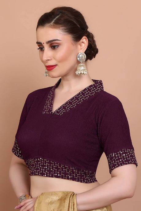 Wine Embroidered Georgette Blouse