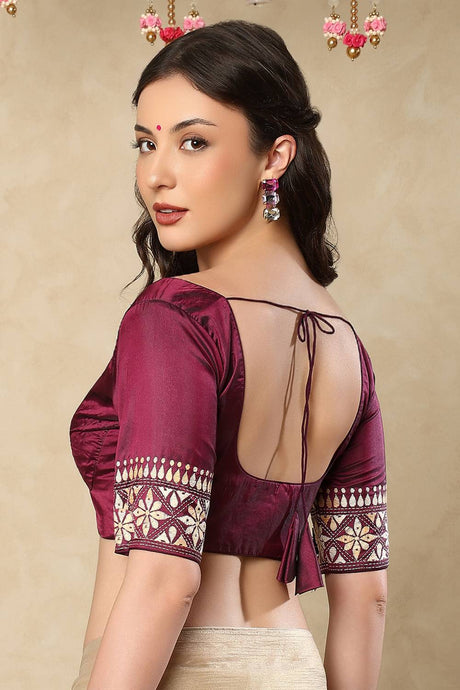 Maroon Embroidered Lycra Blouse