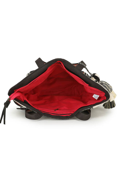 Black Acrylic Jacquard & Cotton Canvas Trellis Embellished Tote Bag