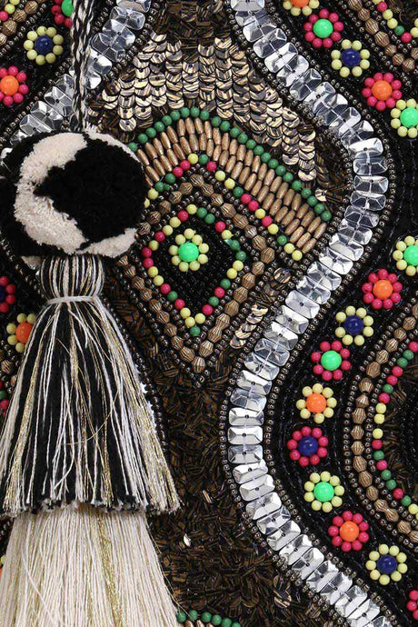 Multi Color Beads Embossed Velvet Clutch