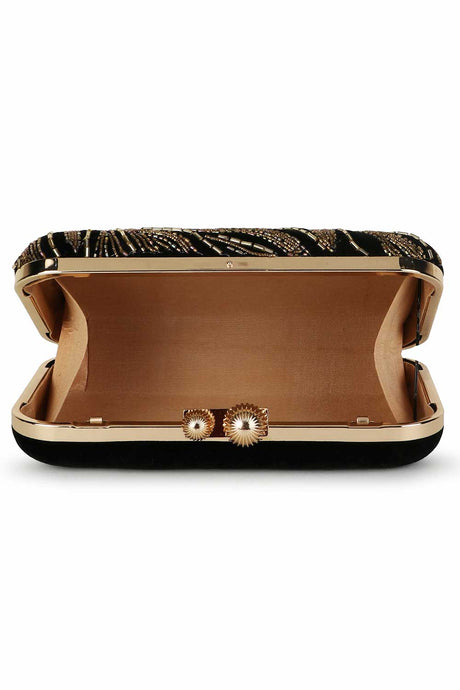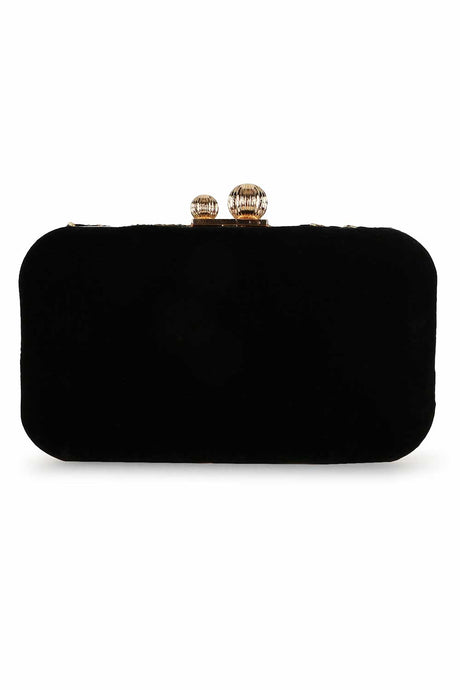 Black And Gold Velvet Abstract Embellished Clutch
