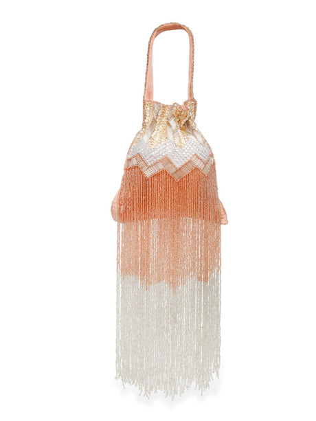 Coral Faux Silk Chevron Embellished Potli