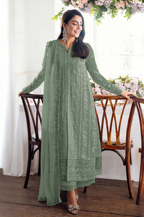 Green Floral Embroidered Georgette Palazzo Suits