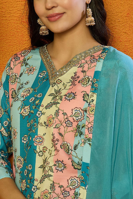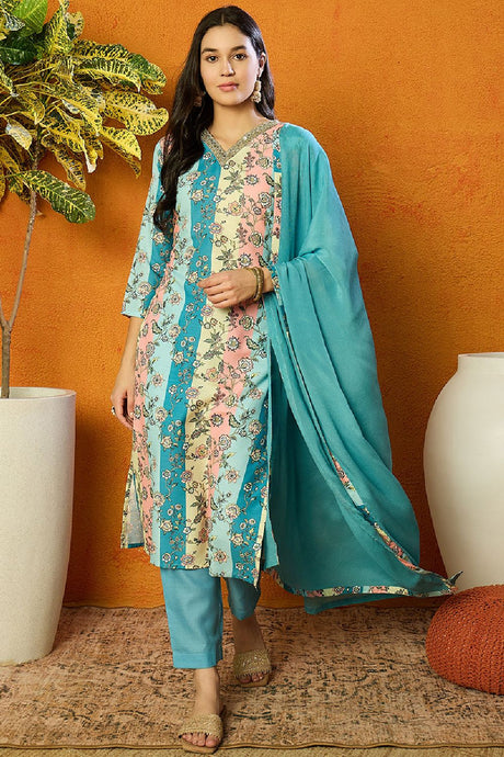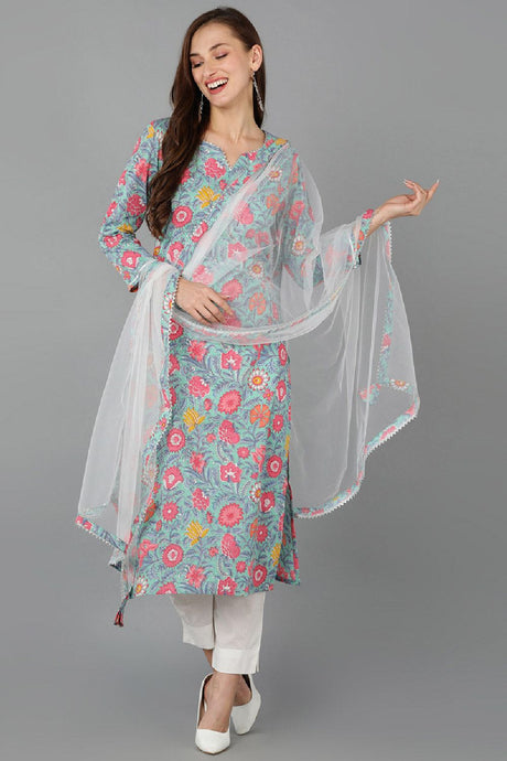 Girl's Multi-Color Floral Printed Cotton Kurta Set