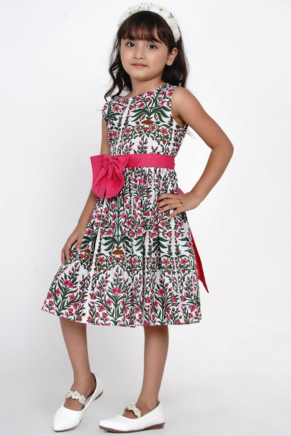 Let your little one dazzle with our Dress designed to bring out her inner princess. Crafted from soft and breathable Cotton this dress ensures all-day comfort for your child. The beautiful Floral Printed add a touch of whimsy to this adorable outfit. Perfect for Party this dress is ideal for twirling moments and unforgettable memories. Pair it with sparkly ballet flats, a matching hairband, and a lightweight cardigan for a complete look. Make every occasion magical with the charm of Dress