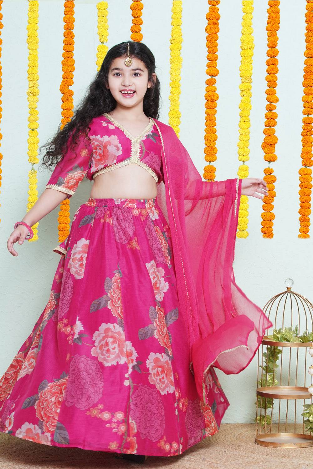 Let your little star shine bright in our Lehenga a perfect blend of tradition and modern charm. Made with premium Silk this lehenga is designed to ensure comfort while she dazzles all day long. The intricate Floral Printed adds a touch of royalty to this Lehenga. Perfect for Festive,Party this lehenga ensures she’s the center of attention at every event. Pair it with a matching dupatta, delicate jewelry, and embellished sandals for a picture-perfect look. Let her embrace her inner princess with the enchanting beauty of Lehenga