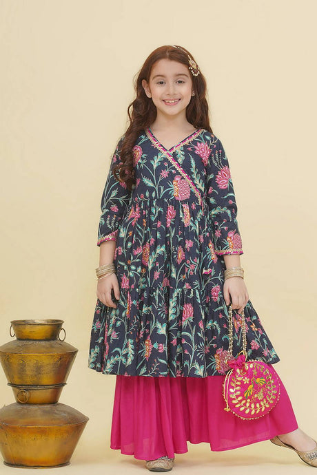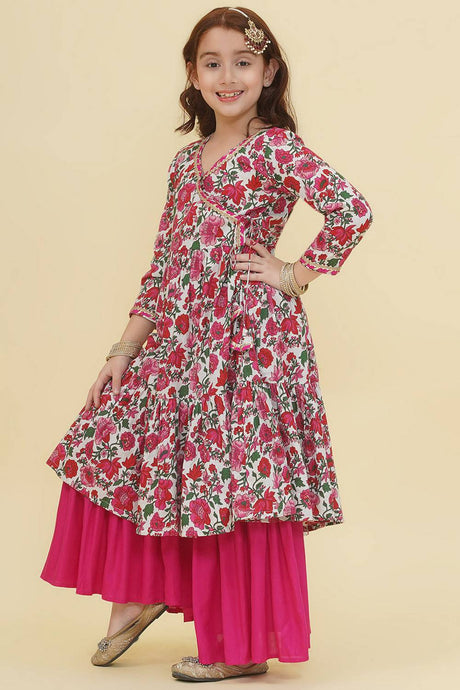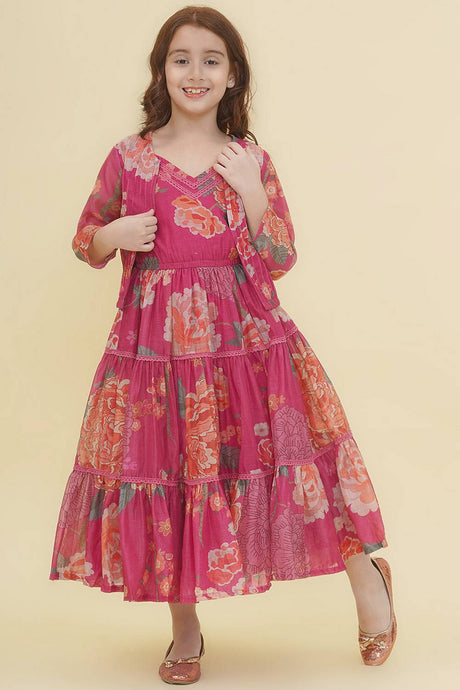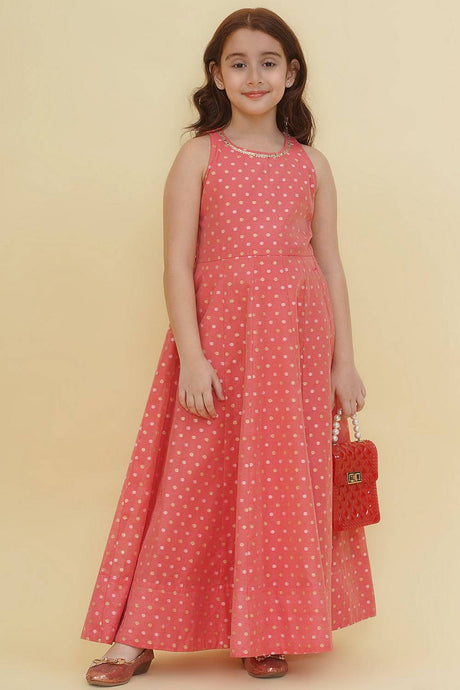 Girl's Pink Leheriya Printed Silk Kurta Set