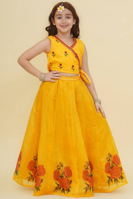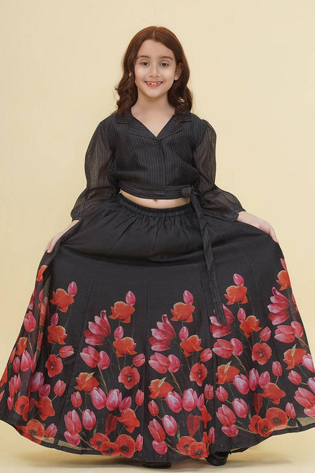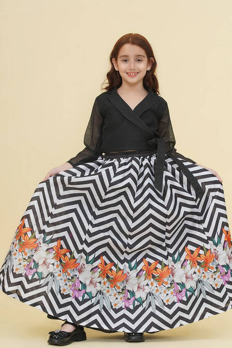 Girl's Pink Zig Zag Printed Silk Lehenga