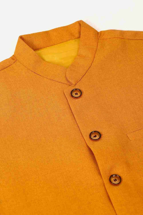 Men's Mustard Solid Kurta Pajama With Nehru Jacket