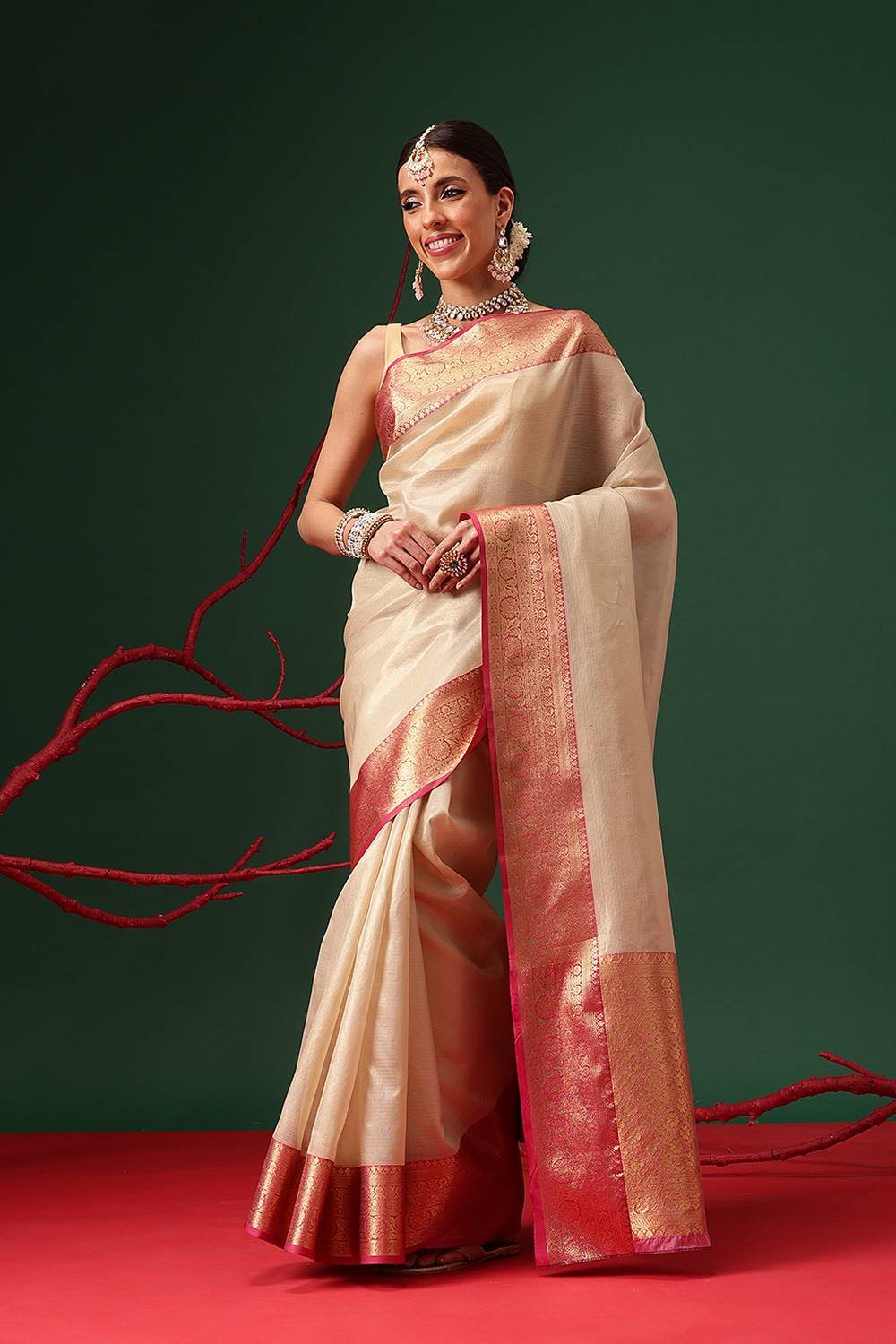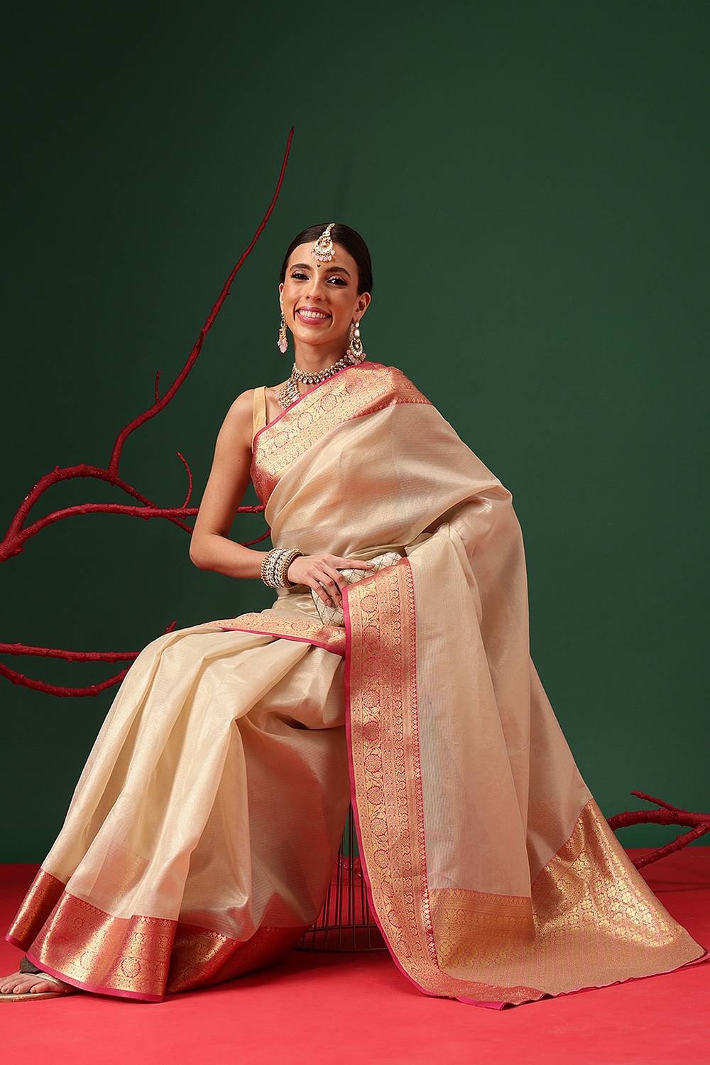 Elevate your wardrobe with our exquisite Saree a masterpiece crafted to add timeless elegance to your style. Made from Tissue this saree offers a perfect mix of comfort and sophistication. Adorned with Solid it showcases intricate craftsmanship that speaks volumes of tradition and artistry. Perfect for Casual this saree is a versatile addition to your collection, ensuring you stand out effortlessly. Pair it with elegant Jewelry, for a glamorous look. Add Clutches or Potli Bags and complete the ensemble with Wedges & Heels , making it a perfect choice for any event. Make a statement and embrace the elegance of Saree today