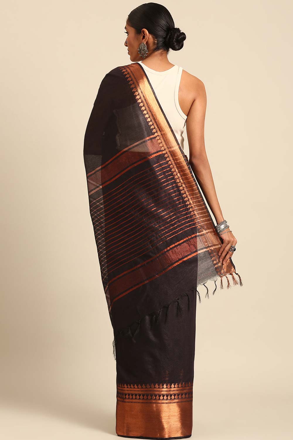 Black Silk Blend Woven Saree