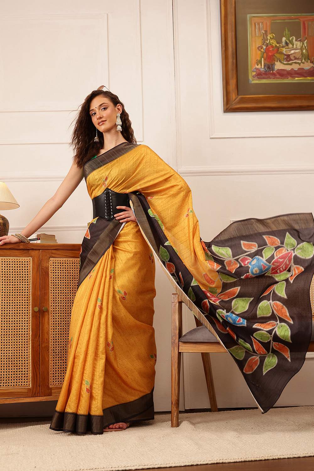 Elevate your wardrobe with our exquisite Saree a masterpiece crafted to add timeless elegance to your style. Made from Kotha Silk this saree offers a perfect mix of comfort and sophistication. Adorned with Floral Printed it showcases intricate craftsmanship that speaks volumes of tradition and artistry. Perfect for Casual this saree is a versatile addition to your collection, ensuring you stand out effortlessly. Pair it with elegant Jewelry, a glamorous look. Add Clutches or Potli Bags and complete the ensemble with Wedges & Heels , making it a perfect choice for any event. Make a statement and embrace the elegance of Saree today