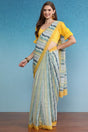 Mustard Stripe Printed Cotton Blend Saree