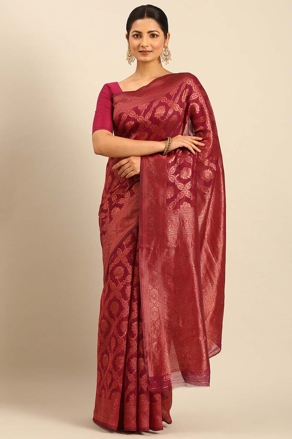 Purple Cotton Woven Saree