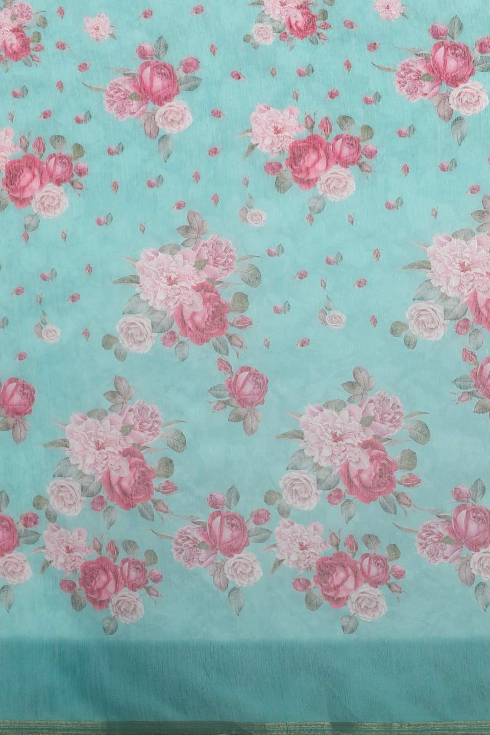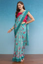 Turquoise Floral Printed Cotton Blend Saree