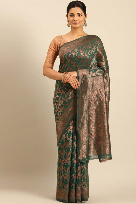 Green Floral Printed Silk Saree