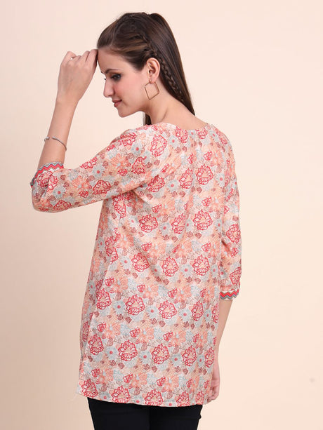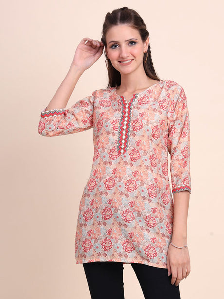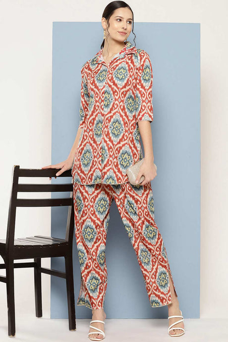 Orange Rayon Blend Floral Printed Straight Co Ords Sets