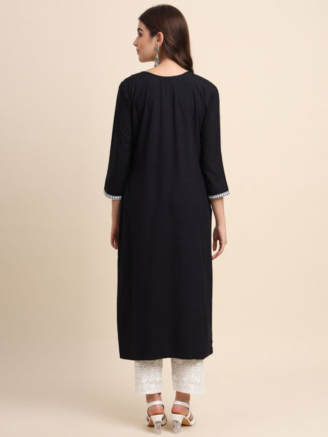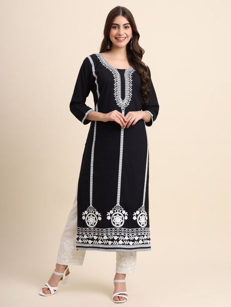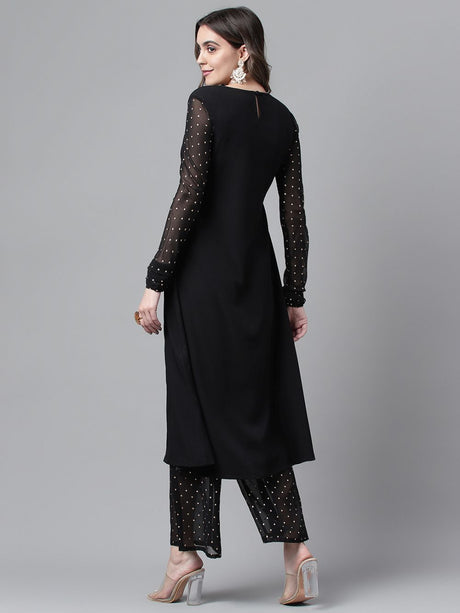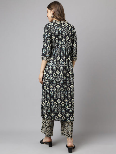 Black Ethnic Printed Straight Kurta With Palazzo And Dupatta