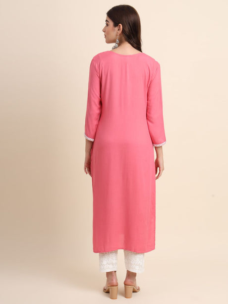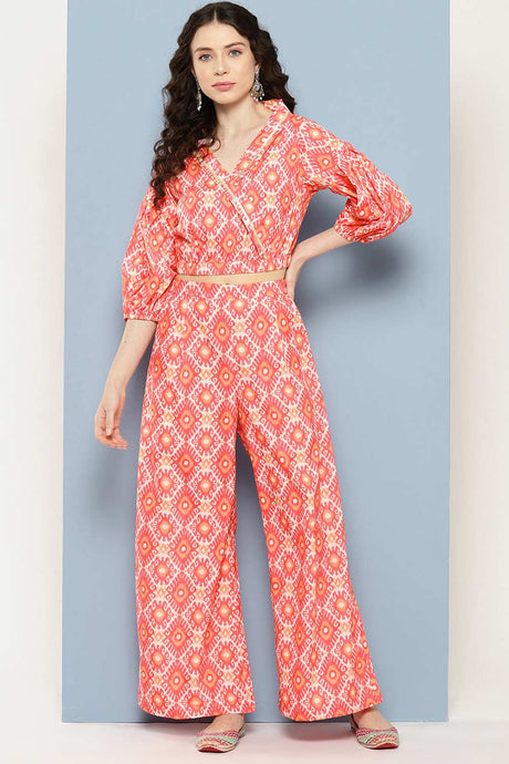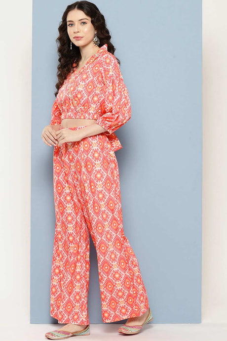 Pink Rayon Blend Paisley Printed Straight Co Ords Sets