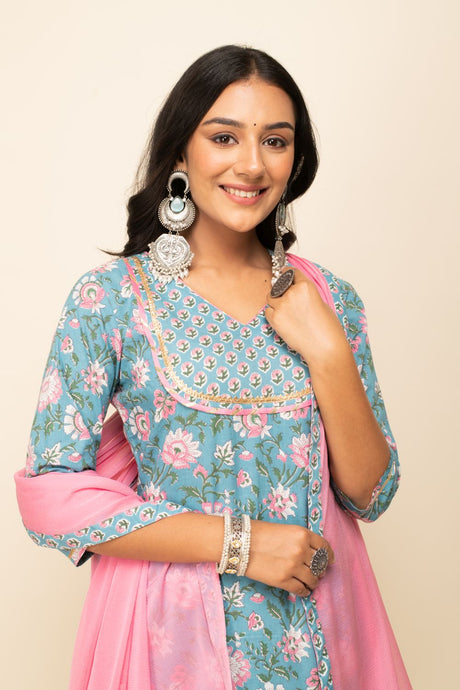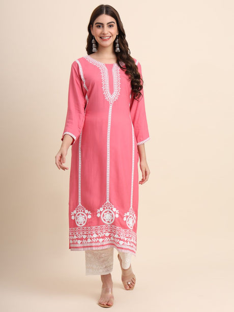 Pink Ethnic Printed Straight Palazzo Suit Set