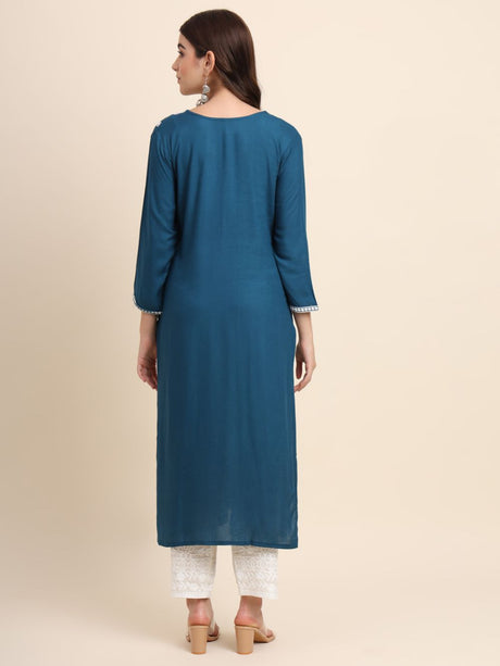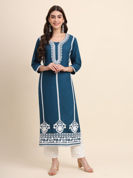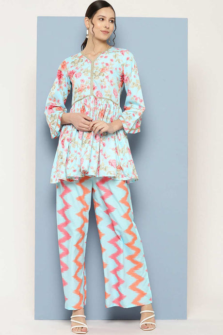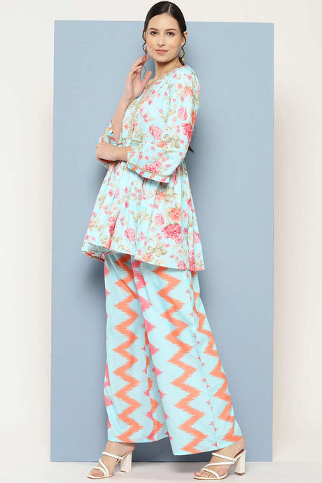 Green Rayon Blend Floral Printed Straight Co Ords Sets