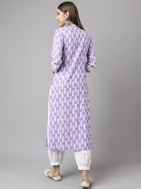 Lavender Poly Crepe Printed Kurta Palazzo Set With Dupatta