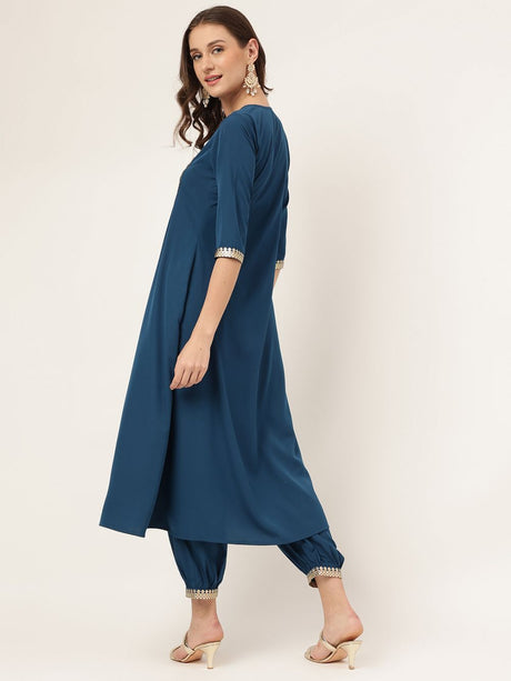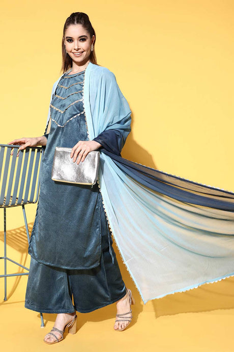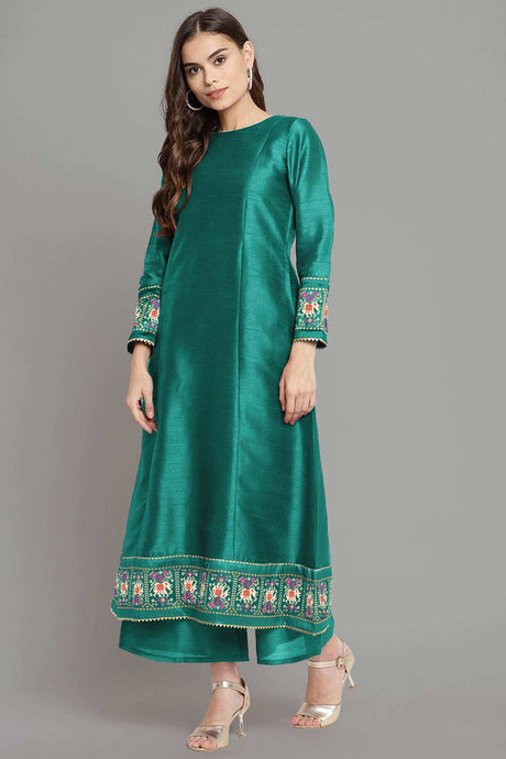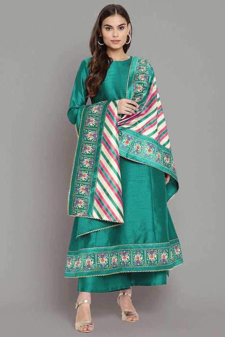Green Poly Crepe Solid Kurta Palazzo Set With Dupatta