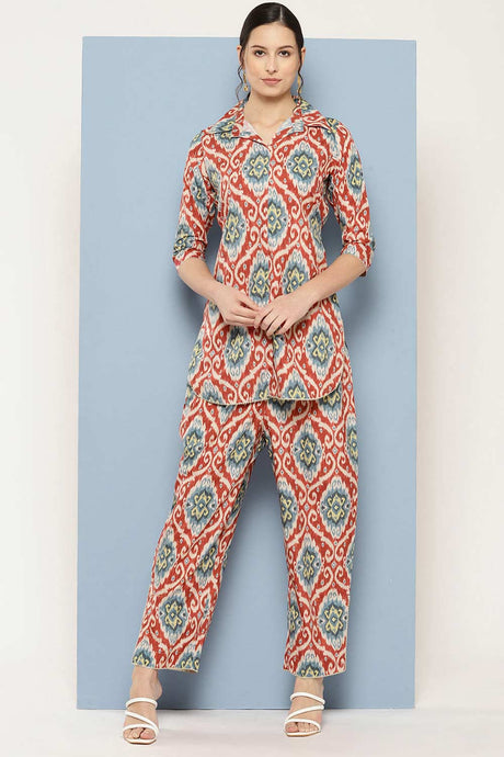 Purple Polyester Printed Straight Shirt Collar Co-Ord Set