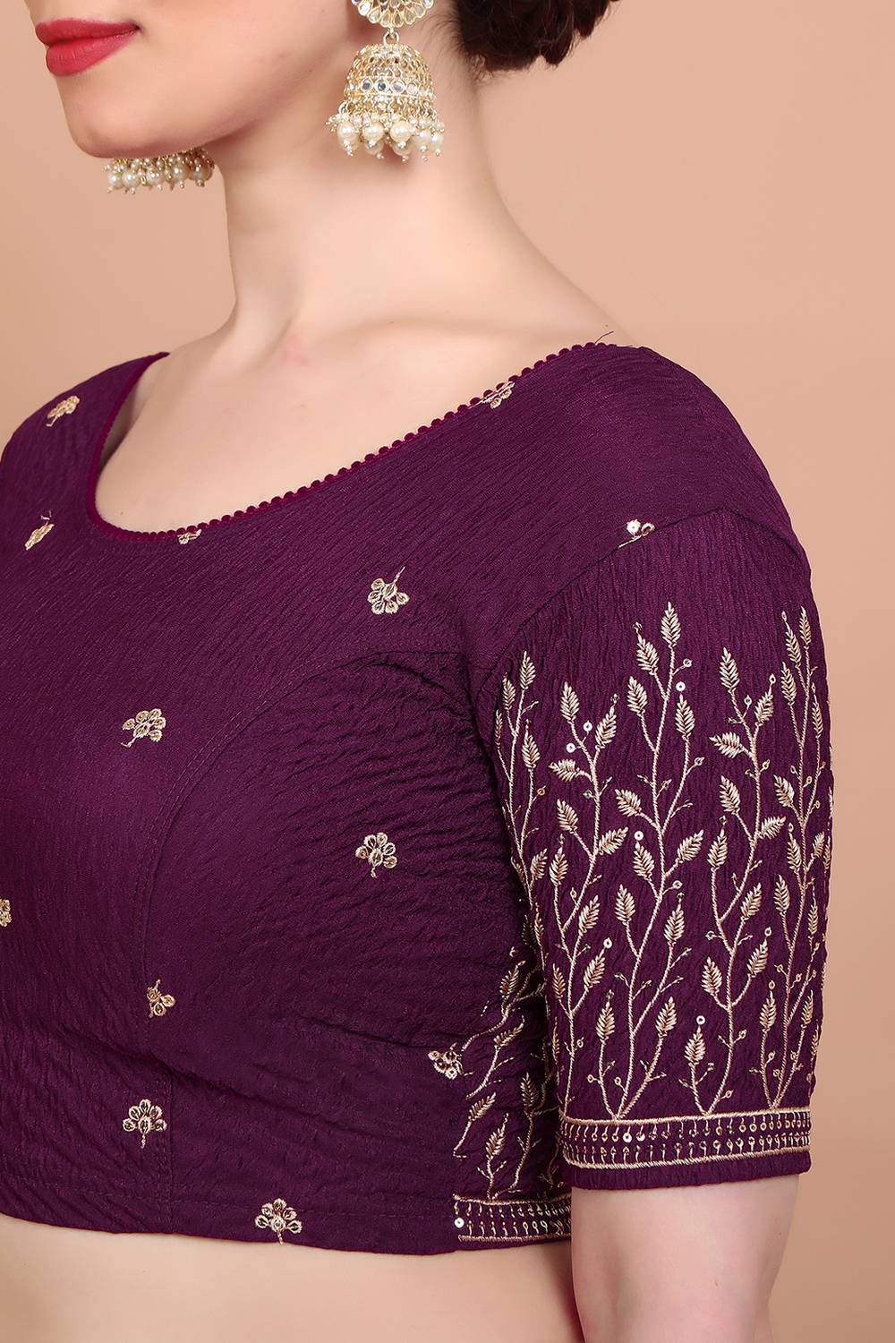 Transform your saree look with our Blouse the ultimate blend of style and comfort. Made from soft and breathable Lycra it ensures a snug yet flexible fit. The intricate Embroidered make this blouse a wardrobe essential. Perfect for Festive it works beautifully with traditional or modern sarees alike. Team it with a silk saree, a bold necklace, and embellished sandals for a sophisticated look. Redefine your saree style with Blouse