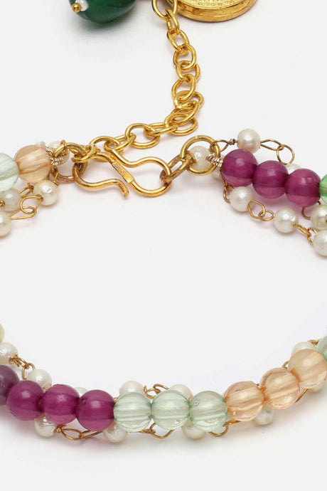 Green And Peach Adjustable Anklet With Kundan And Pearls