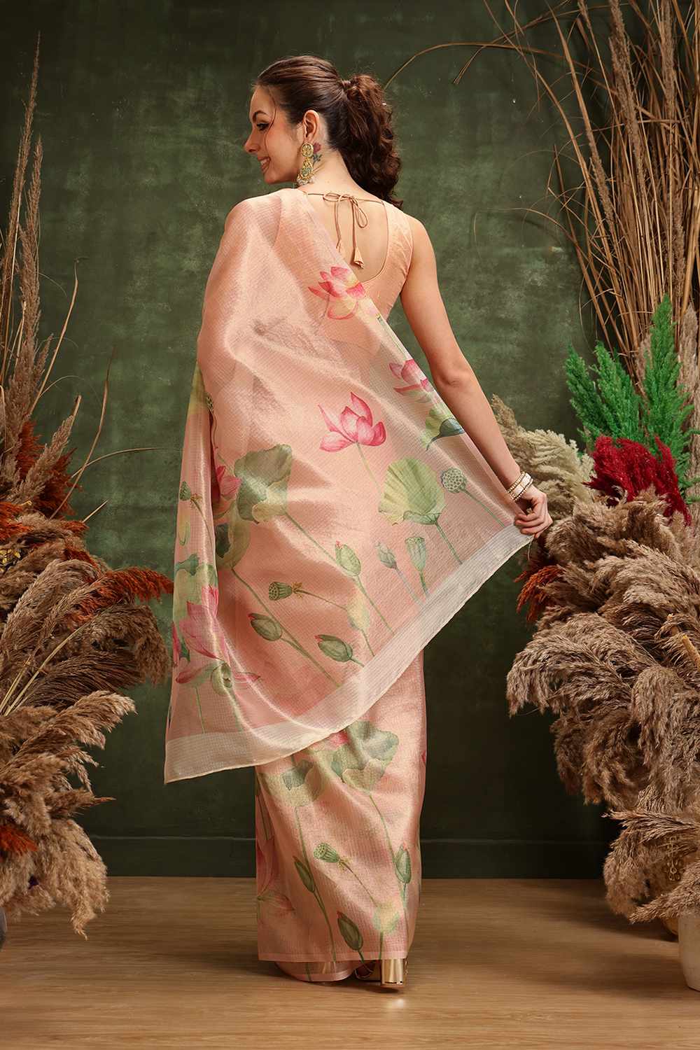 Elevate your wardrobe with our exquisite Saree a masterpiece crafted to add timeless elegance to your style. Made from Tissue this saree offers a perfect mix of comfort and sophistication. Adorned with Floral Printed it showcases intricate craftsmanship that speaks volumes of tradition and artistry. Perfect for occasion-festivewear,occasion-partywear this saree is a versatile addition to your collection, ensuring you stand out effortlessly. Pair it with elegant Jewelry, for a glamorous look. Add Clutches or Potli Bags and complete the ensemble with Wedges & Heels , making it a perfect choice for any event. Make a statement and embrace the elegance of Saree today