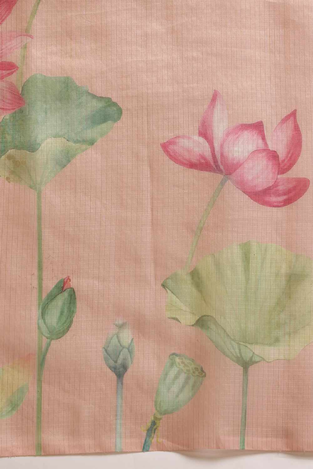 Orange Floral Printed Tissue Saree
