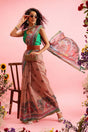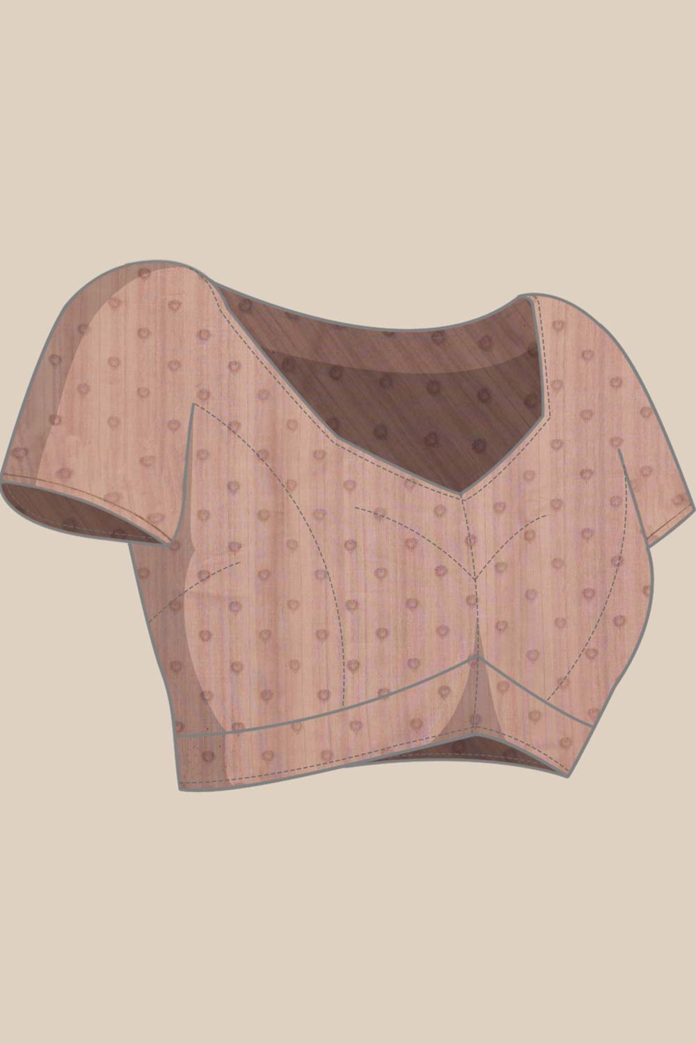 Enhance your wardrobe with this Peach Cotton Blend Printed Madhubani Saree , showcasing detailed woven motifs that offer a luxurious feel and timeless charm.